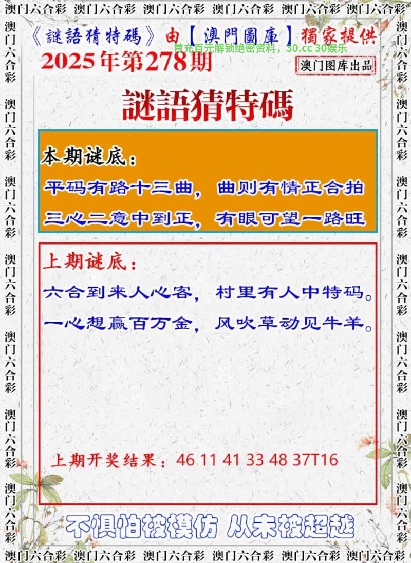 278期:【謎語猜特碼】 平码有路十三曲,曲则有情正合拍。 三心二意中到正,有眼可望一路旺。 七肖:牛虎猴羊鸡鼠猪 四肖:牛虎猴羊 |